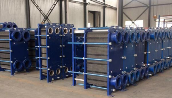 可拆卸板式换热器是由许多冲压有波纹薄板按一定间隔,四周通过垫片密封,并用框架和压紧螺旋重叠压紧而成。