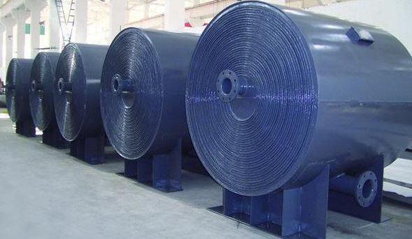 螺旋板式换热器由两张卷制而成,进行余热回收,充分利用低温热能。