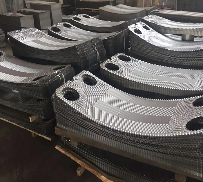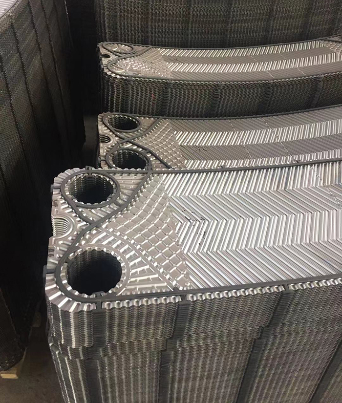 1)金属板:金属板是压制有波纹、密封槽和角孔的金属薄板,是重要的传热原件。波纹不仅可强化传热,而且可以增加薄板的和刚性,从而提高板式换热器的承压能力。并且可以促使液体呈湍流状,从而减轻沉淀物或污垢的形成,起到一定的“自洁”作用。