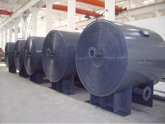 ⑦价格低廉。相同换热面积下,螺旋折流板换热器的体积比传统弓形折流板换热器小1/3,所需原材料费用降低。能否选用螺旋板换热器的关键是堵塞问题,尽管它有自清洗作用,但由于设计或操作不当也会发生堵塞,这时即使用可拆式结构也难于用机械方法清洗。采用水、气或蒸汽吹洗,操作方便效果更好。